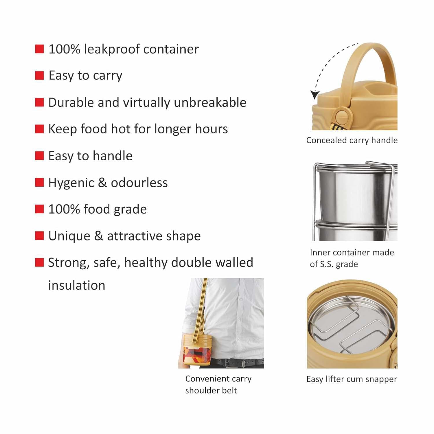 Engineered with precision, the Cello Meal Kit combines durable plastic exterior with premium stainless steel containers (355ml each) for optimal food preservation. The leak-proof design prevents spills while maintaining food-grade quality standards. Its insulated construction keeps meals at desired temperatures, making it ideal for professionals and travelers seeking a reliable, easy-to-carry lunch solution.